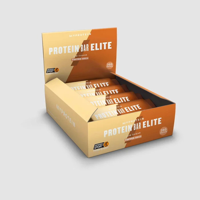 Eiwit Bar Elite - Toffee VanillaOnze eiwitrepen bevatten 26 g eiwitten per reep en zijn suikerarm. Daarmee zijn ze de perfecte snack om aan je zoete trek te voldoen — zonder dat je afwijkt van je trainingsregime. Onze Elite eiwitrepen zijn door Informed-Sport getest op natuurlijk voorkomende verboden stoffen. De test vond plaats in het wereldklasse LGC sportlab en in overeenstemming met de richtlijnen van het World Anti-Doping Agency (WADA). Het product is officieel veilig bevonden voor professionele atleten van alle niveaus. -