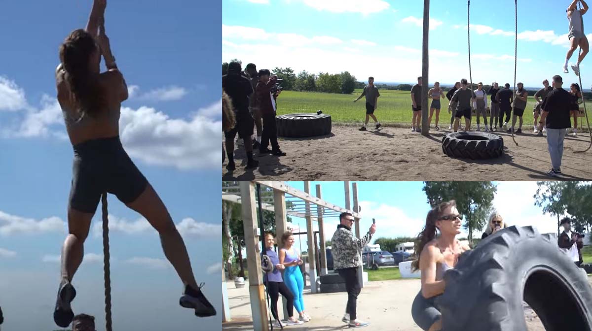 Eerst was er de touwklim. Dit was absoluut slopend voor hun handen, en Lucy verloor zelfs een nagel. Dat werd al snel gevolgd door dozenrollen, en dat is precies hoe het klinkt: een doos over een veld rollen. Dan banden trekken, meer touw klimmen, meer banden trekken, banden gooien en burpees met een extra obstakel. Lucy was uitgeput. Aangezien ze een ultramarathonloper is, moet het een serieuze training zijn geweest.