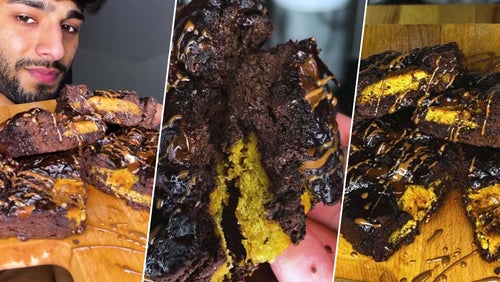 Deze koekjesbrownies van Zack Chugg bevatten maar liefst 49 g proteïne voor de hele batch en zorgen voor een ooey-kleverige koekjesbrownie-goedheid.
