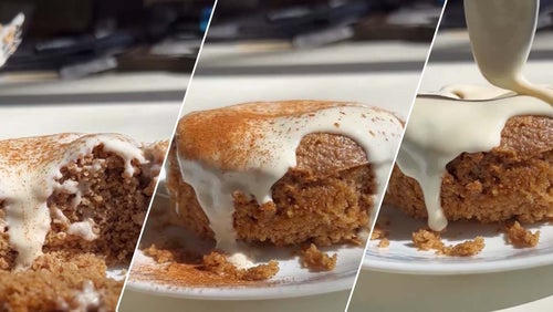 Deze luchtige, met kaneel gebakken havercake is gegarneerd met een heerlijke roomkaasglazuur waarmee je je dag gegarandeerd goed begint. 33 g eiwit en 332 calorieën, ik kan niet wachten om deze eens te proberen.