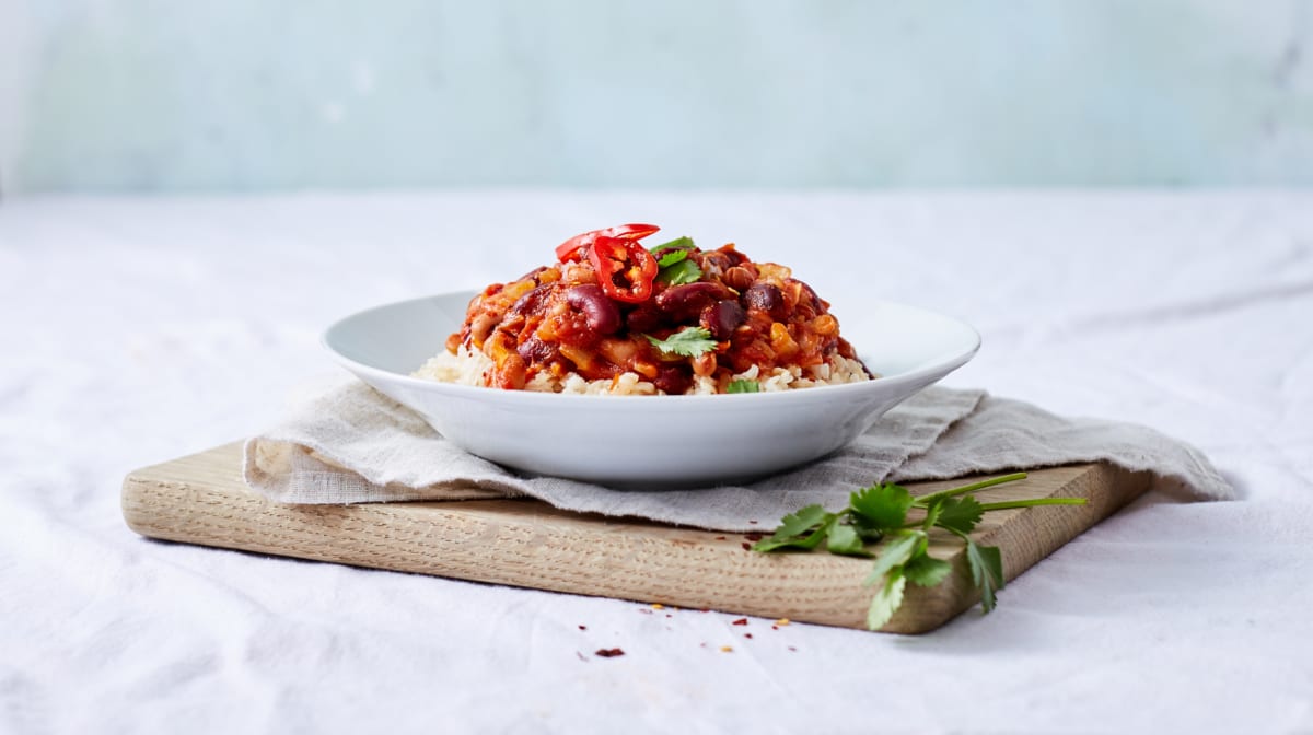 Maak kennis met je nieuwe favoriete winterwarmer. Deze vurige veganistische chili is de held van de kidneyboon, die rijk is aan vitamine B1, ijzer, kalium en vol eiwitten en smaak zit.