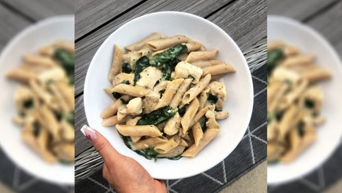 Maak deze pastaschotel in batches om de hele week van te genieten en zorg ervoor dat je tegen de middag 38,8 g eiwit binnenkrijgt.