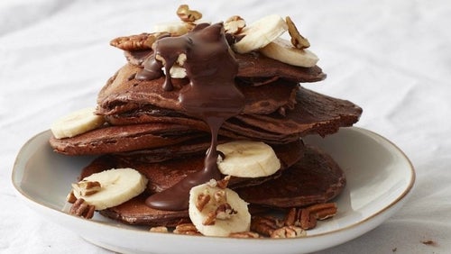 Banana Pecan Protein Pancakes Met Gooey Chocolade Saus