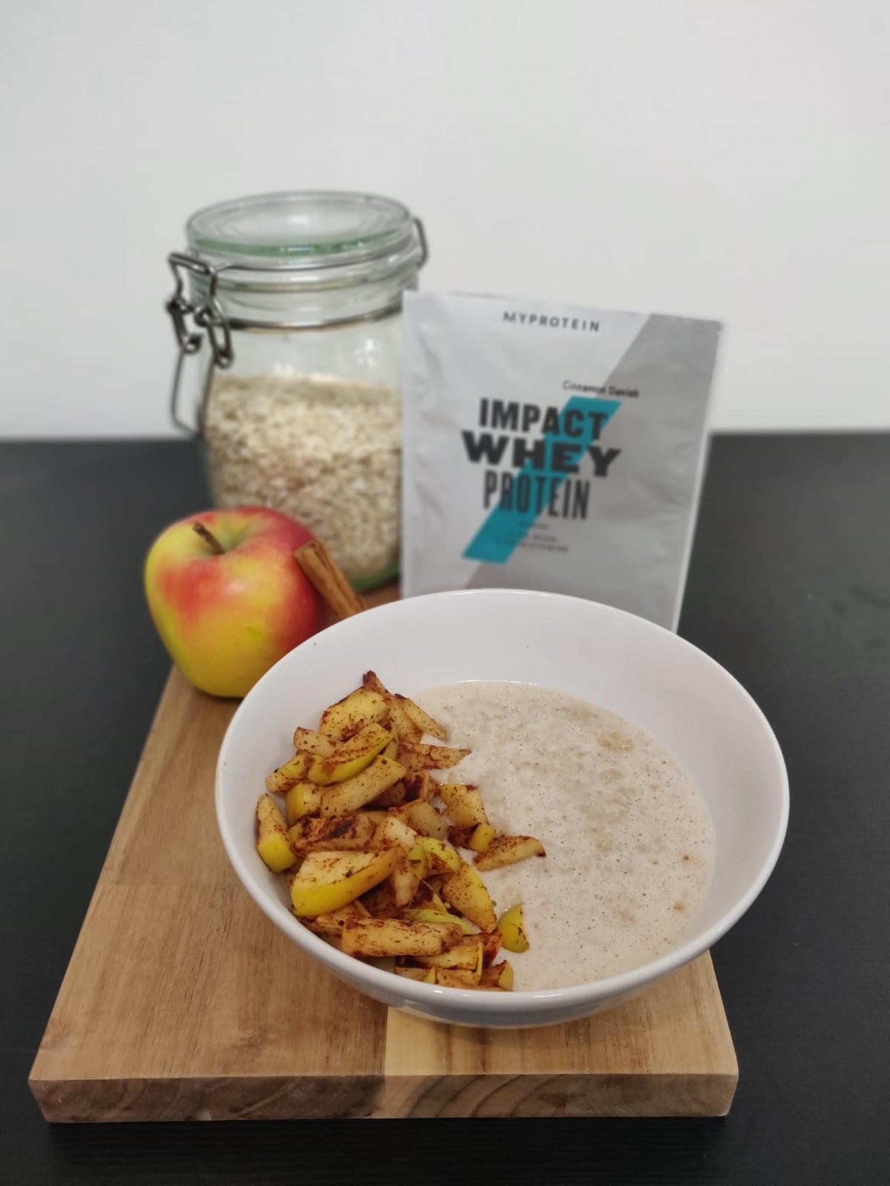 Door het toevoegen van de Impact Whey Protein Cinnamon Danish krijgt je ontbijt een heerlijke, romige, kaneel smaak en daarnaast bevat je ontbijt ook nog is veel eiwitten. De basis van het ‘appeltaart ontbijtje’ kan je aanvullen met warme appel bestrooid met kaneel om nog meer smaak en een bite aan je ontbijt te geven.