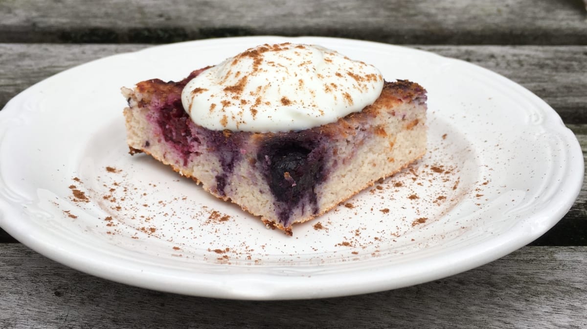 - 100 gram kokosmeel - 30 gram (vanille) eiwitpoeder - 1 ei - 2 eiwitten - 250 gram diepvries bessen (ik gebruikte blauwe bessen en bramen) - 150 gram magere Franse kwark - 200 mL kokosmelk of ongezoete amandelmelk (Alpro) - 2 theelepels kaneel - 1 eetlepel stevia - 1 theelepel bakpoeder