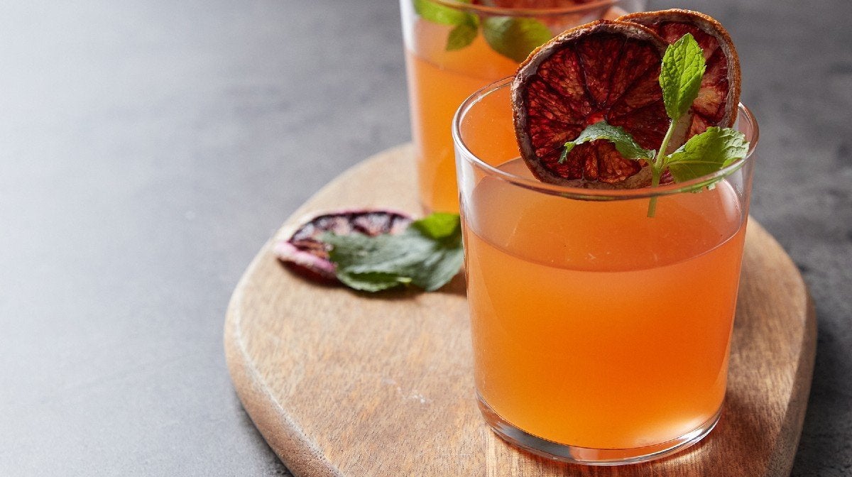 2 scoops Essential BCAA 2: 1: 1 (Blood Orange) - Muntblaadjes en bloedsinaasappelschijfjes om te garneren (optioneel)