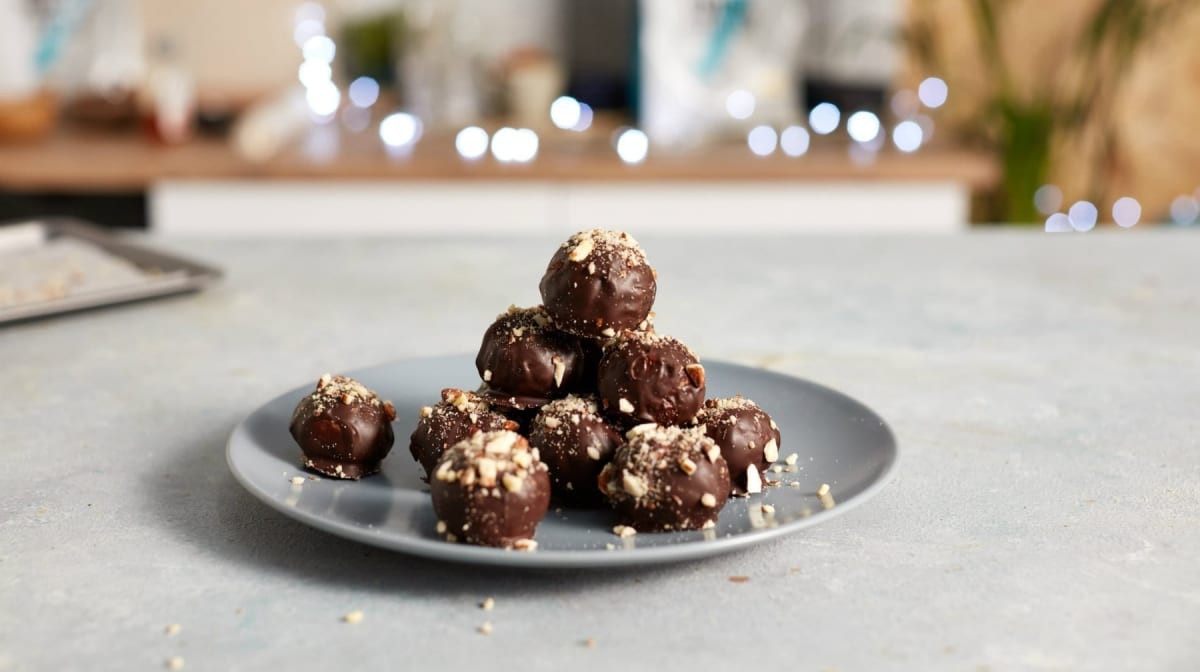 Gezoet met honing en met een romige, volledig natuurlijke amandelboter, hoef je dit seizoen niet te worden verleid voor andere lekkernijen. Deze balletjes zitten ook boordevol eiwitten door de Impact Whey Protein en Eiwitchocolade die 62% minder suiker bevatten dan de gemiddelde reep. Dus je kunt genieten van deze kleverige goedheid met maar een fractie van het schuldgevoel.