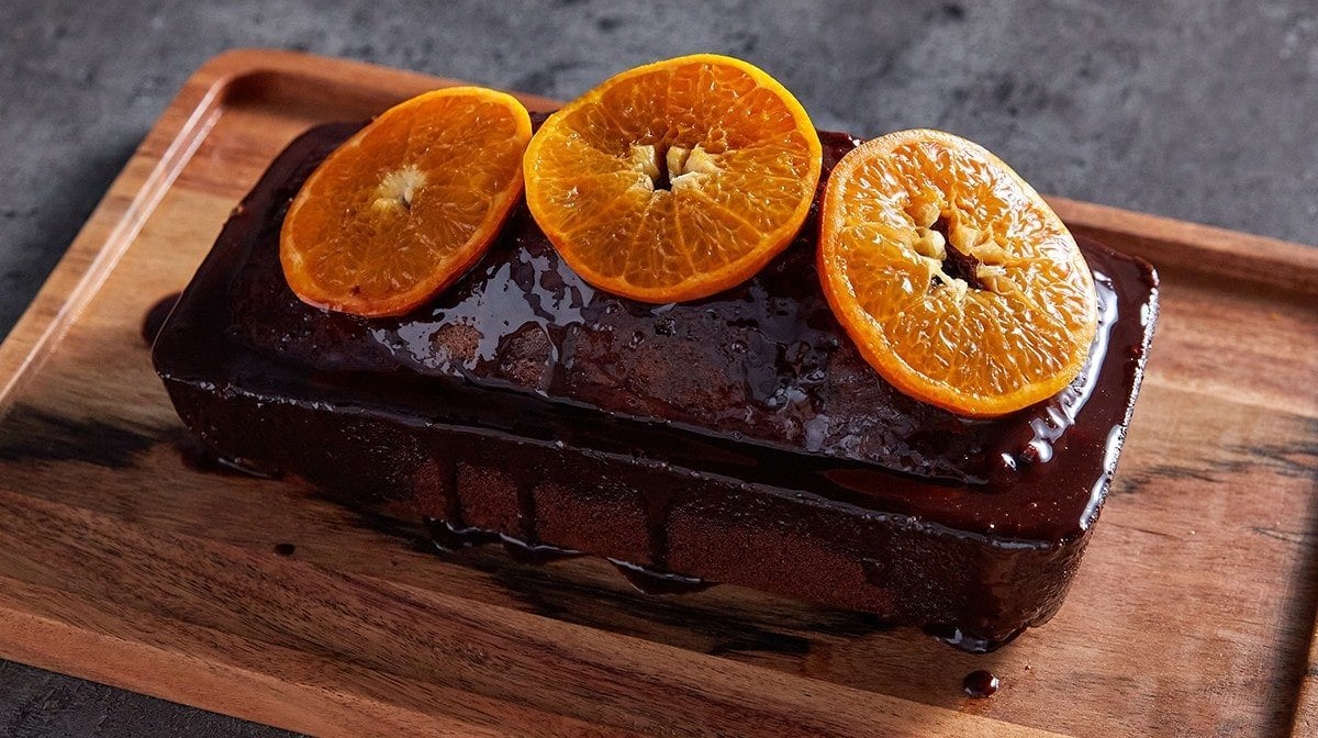 - Haal voorzichtig uit de cakevorm, bedek met stukjes sinaasappel en snijd in plakjes om te serveren. Geniet ervan met bijvoorbeeld een klodder Griekse yoghurt voor die extra eiwitten.