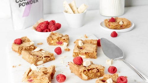 Framboos & Witte Chocolade Collageen Blondies