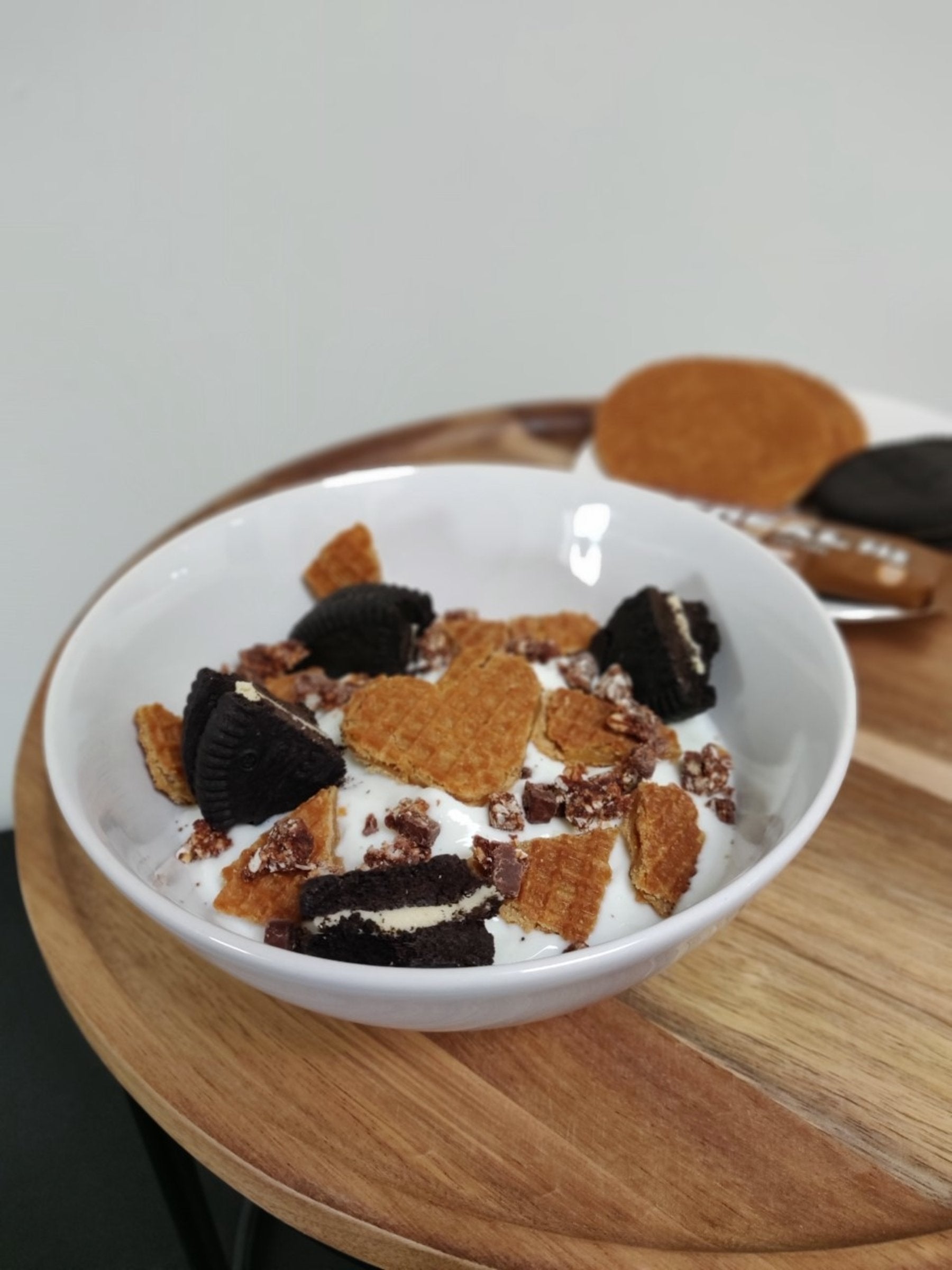Een ontbijt met magere kwark is bij vele het standaard ontbijt voor een productieve dag. Je kunt de toppings voor deze bowls zelf kiezen, zoals koekjes. In combinatie met eiwitrijke koekjes en Nederlandse lekkernijen is je Cookie breakfast bowl compleet.