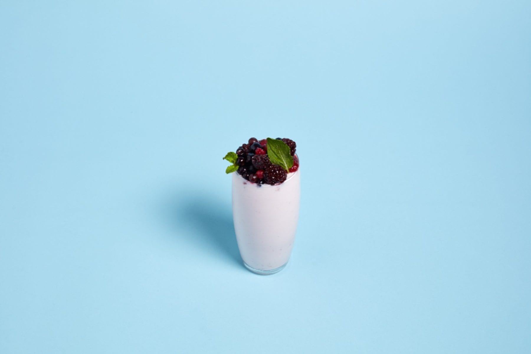 • 250 ml melk • 1 lepel Impact Whey Protein • 1 banaan • Dipsyoghurt • Handvol bevroren gemengde bessen