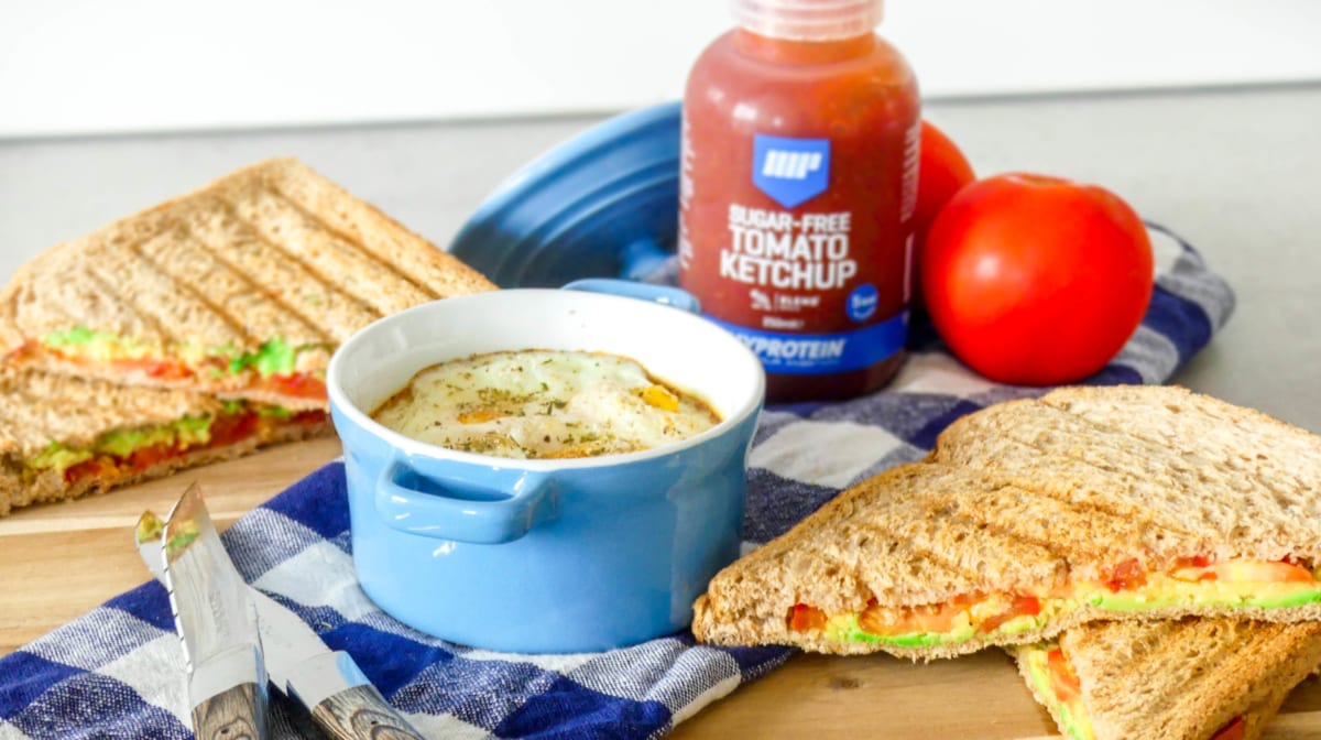 Een ei kun je op allerlei verschillende manieren bereiden, denk aan bijvoorbeeld; gebakken, scrambled, gekookt en gepocheerd. Maar de manier hoe wij vandaag een eitje hebben bereid is ook erg lekker! Gewoon in een pannetje in de oven. Je kunt het ei zo ver garen als jij dat wilt! Daarbij hebben we een tosti geserveerd met avocado en tomaat. Zo krijg je voldoende onverzadigde vetten binnen! Van de totale 19 gram vet is er slechts 4,5 gram verzadigd. Verder bevat deze maaltijd per persoon vrijwel geen suikers en aardig wat eiwitten, 19 gram. Wil je nog wat meer eiwitten toevoegen in deze maaltijd? Doe dan bijvoorbeeld nog wat extra kipfilet op de tosti, uiteraard is dan je gerecht niet meer vegetarisch!