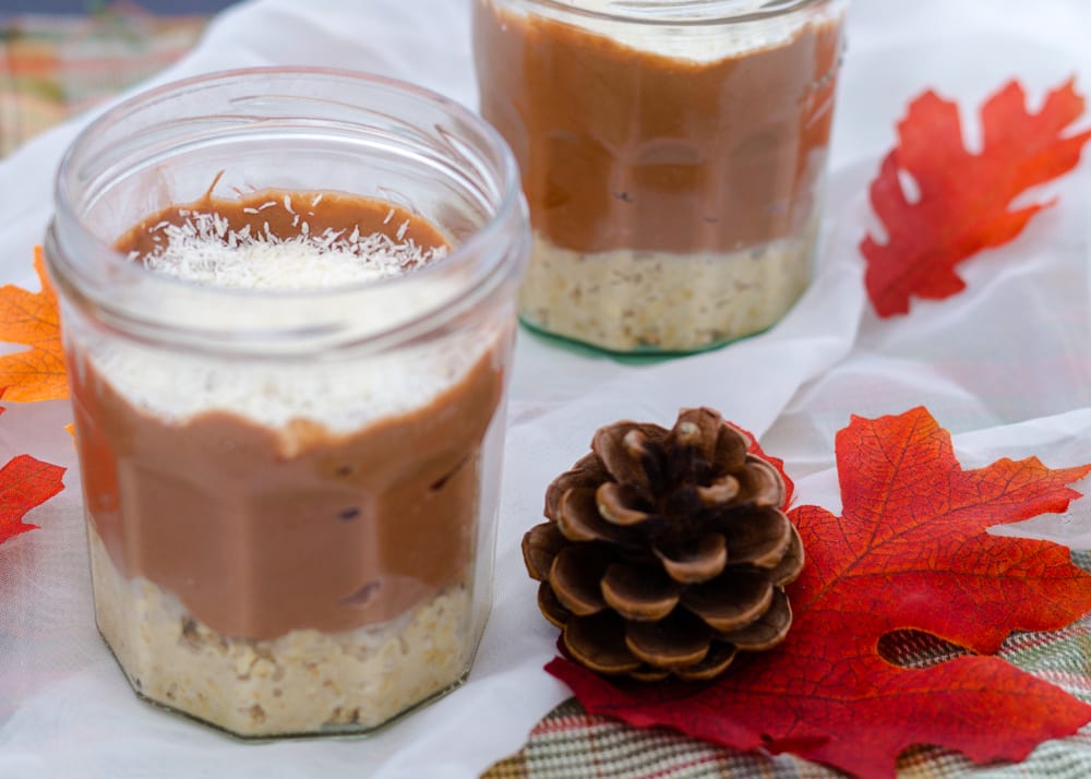 - Verdeel de havermoutpap over de glaasjes en druk licht tegen de bodem.