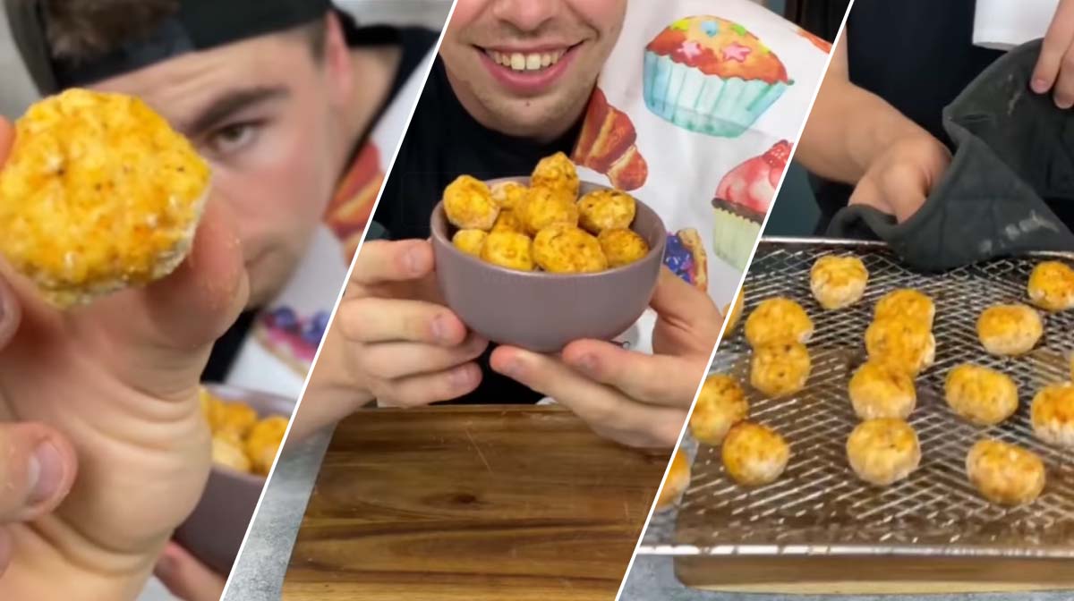 Dompel je kipballetjes één voor één in het eiwit, rol dan je bloem- en kruidenmengsel en voeg toe aan je luchtfriteuserek of bakplaat.