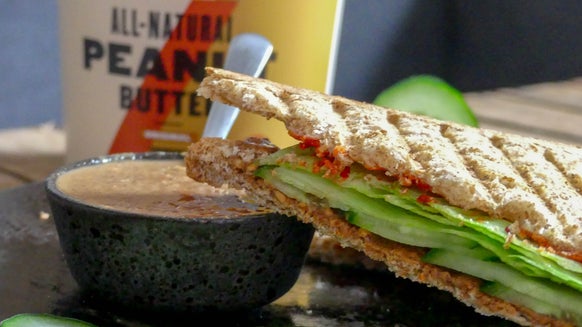 Een kleverig centrum boordevol chocoladeschilfers en 21 g eiwit.