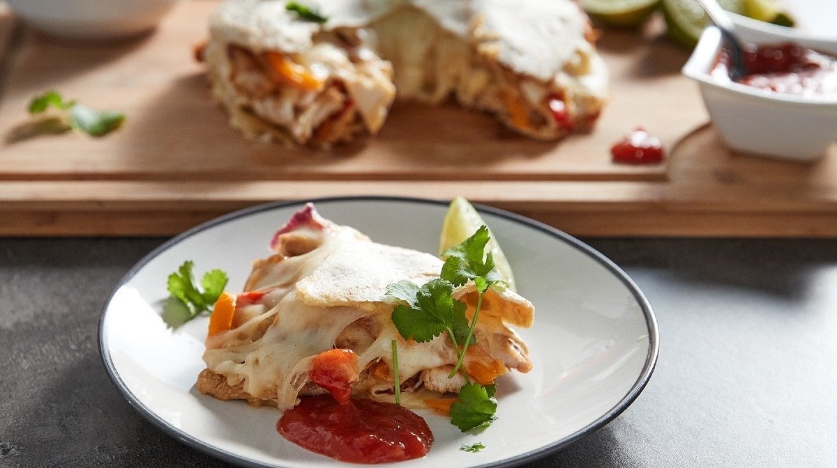 Vergeet het vullen en inpakken van elke fajita - dat is zo 2020. Nu draait het allemaal om het maken van lagen en lagen malse kip, zinderende paprika's en druipende kaas - die je vervolgens in een royale wig kunt snijden en serveren met een klodder zure room en salsa.