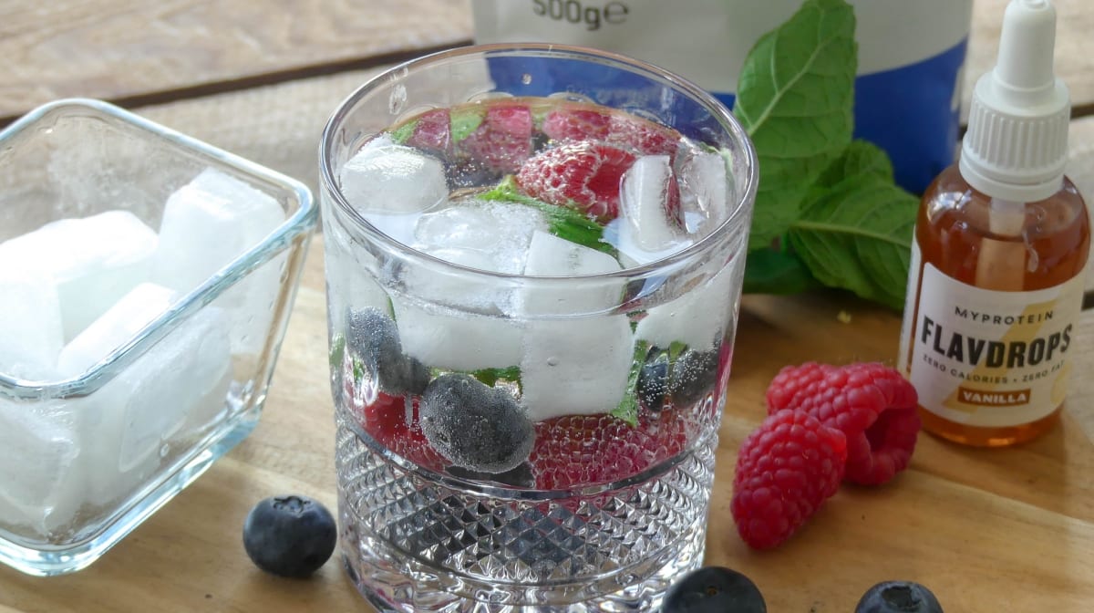- Vul een glas met wat frambozen, blauwe bessen, munt en schenk er spa rood in. Doe een paar van de ijsklontjes bij. Voila, een lekker koud drankje mét aminozuren erin!