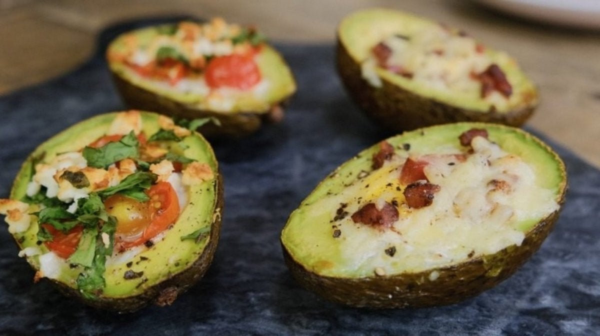 Voeg nu de toppings toe aan je avocado’s en bak ze vervolgens 15 minuten in de oven. Niall is gegaan voor spinazie, feta en tomaten aan de ene kant en cheddar en spek aan de andere kant, maar voel je vrij om hierin je eigen keuzes te maken!