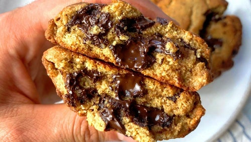 - Bekleed vervolgens de bodem van een springvorm (22 cm) met bakpapier. Verdeel het mengsel over de bodem en druk goed aan met de achterkant van een lepel, zodat de bodem stevig is. Zet de springvorm in de koelkast terwijl je verder gaat met de rest van de taart.