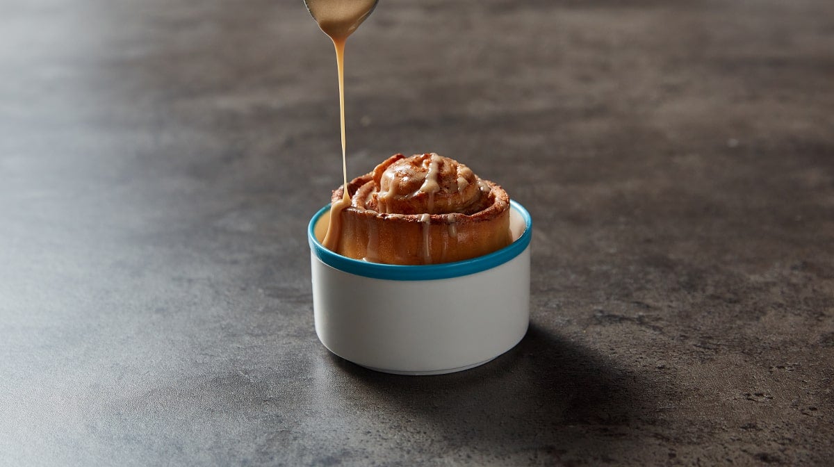 5) Plaats je kaneelbroodje in een kleine ovenvaste schaal of mok en bak dan 15-20 minuten tot ze goudbruin en gaar zijn.