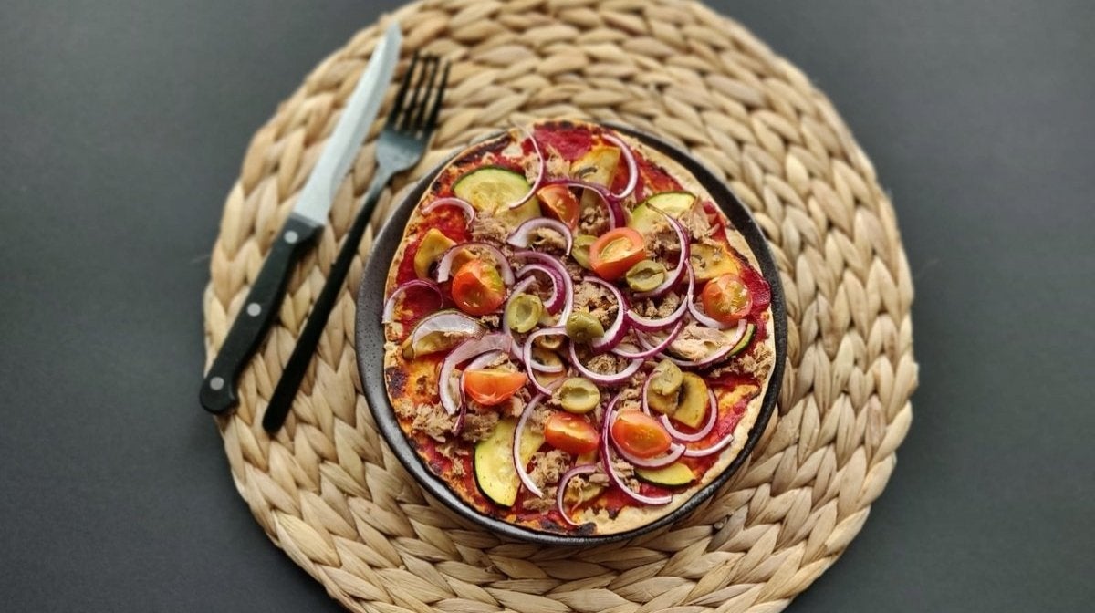 Heb jij vaak zin in een pizza, maar wil je ook gezond blijven eten? Dan is deze ‘pizza wrap’ een geschikt recept voor jou! De pizza is gemaakt van een wrap en de topping kan jij zelf bepalen. Deze keer koos ik voor een pizza met tonijn, rode ui, courgette, champignons & olijven.