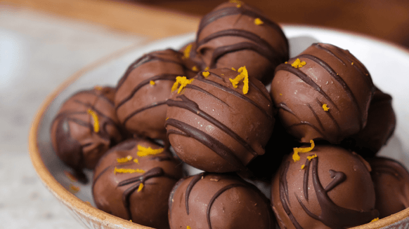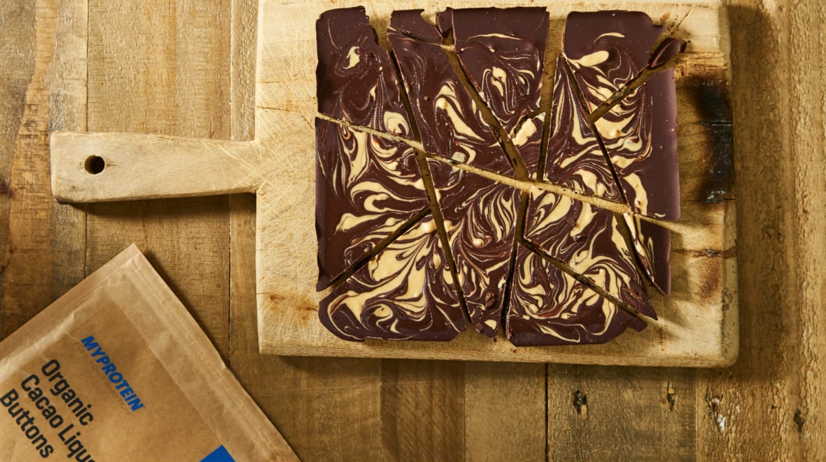 200g pure chocolade (om je eigen donkere chocolade te maken, smelt je Organic Cacao Liquor Buttons met een beetje van je favoriete zoetstof) 2-3 el. Organisch Maca-poeder 5 tl. Amandelboter (glad)