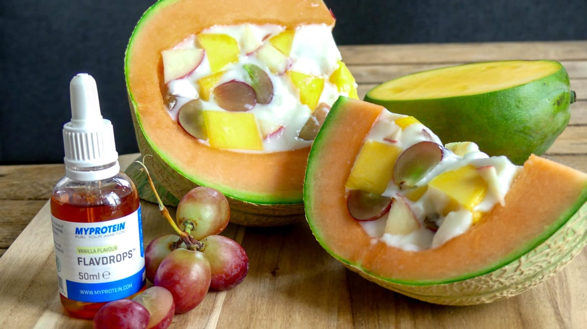 Wat zijn de meloenen in deze periode toch lekker! Daarom hebben we weer een lekker receptje gemaakt met meloen, dit keer de cantaloupe. Uiteraard kun je voor dit recept ook gemakkelijk een galia meloen of andere soorten gebruiken, een watermeloen raden we wel af! De meloen hebben we namelijk uitgehold en gevuld met fruit en panna cotta! Originele panna cotta wordt gemaakt van melk, room, gelatine en suiker. Wij hebben de room en suiker weggelaten, deze bevatten namelijk veel vetten en suikers. De melk met gelatine worden ook goed stijf en met wat lekker vanille flavor drops wordt het gerecht toch nog lekker zoet!