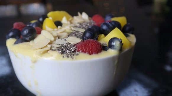 Stop de cashews in de blender samen met de rest van alle ingredienten voor de vulling tot deze glad en vloeibaar is. Giet deze over de bodem en plaats deze in de vriezer gedurende 1 uur.