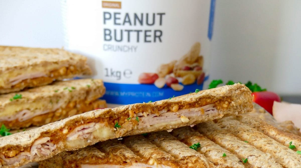 Een pindakaas tosti met kip