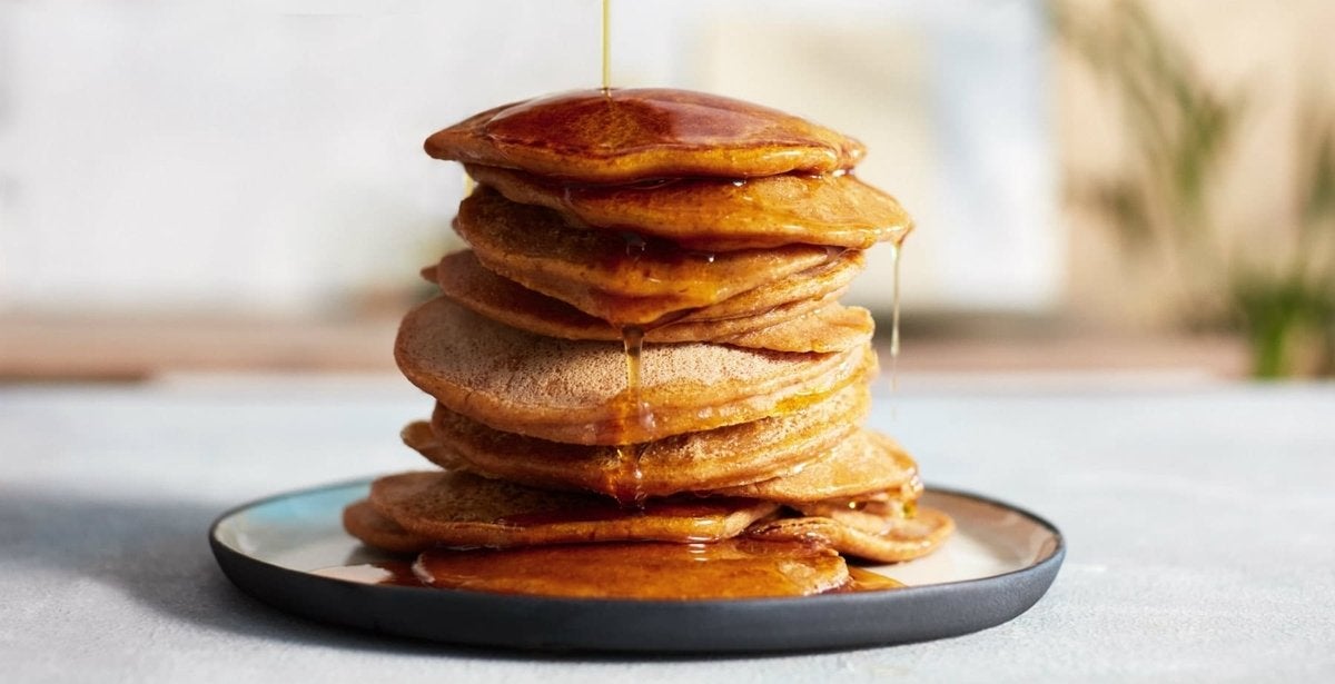 - Herhaal met de rest van het beslag tot je een stapel pannenkoeken hebt! Serveer met ahornsiroop en een snufje kaneel.