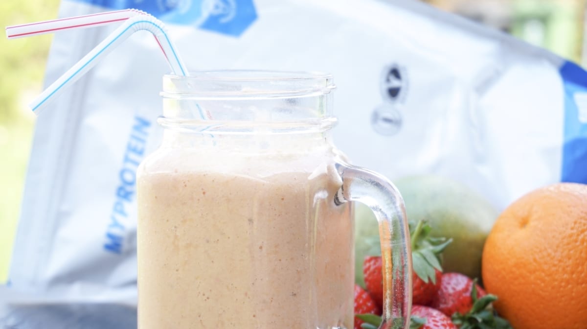 - Doe alle vruchten in een blender, voeg hier de eiwitpoeder en de yoghurt aan toe en blend tot alles goed gemengd is. Je smoothies zijn klaar, geniet ervan!