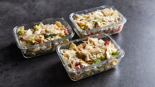 2. Spray je koekenpan of wok in met caloriearme no-stick spray. Voeg de kip toe aan de pan, breng op smaak en bak tot de kip gaar is. Voeg gehakte wortelen en broccoli toe aan de pan en bestrooi met knoflookzout.