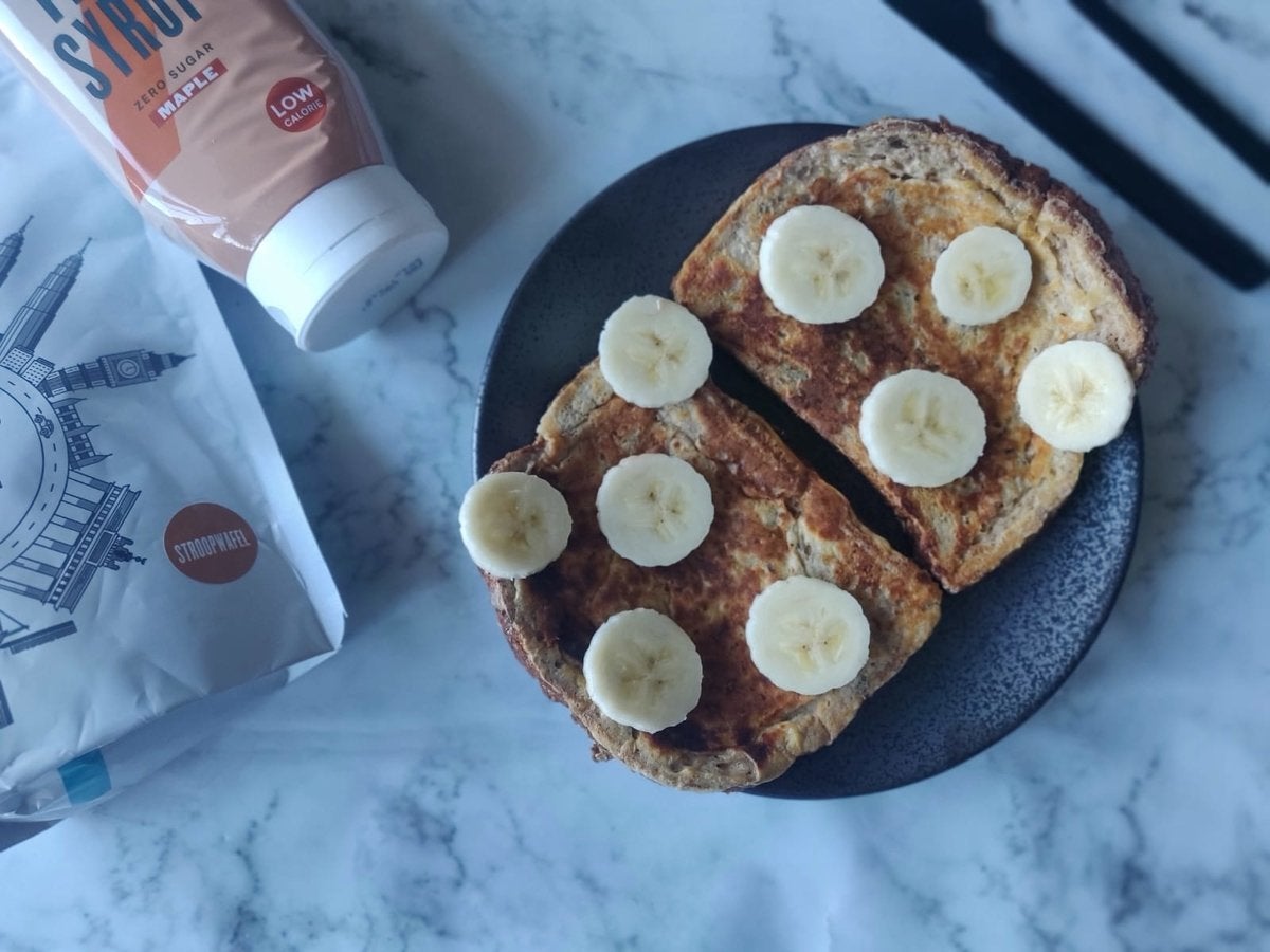 De Whey zorgt niet alleen voor extra eiwitten, maar het maakt jouw wentelteefjes nog lekkerder door de heerlijke smaken. Ik koos dit keer voor de Whey stroopwafel.