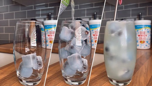 In een ramekin, kleine pot of afsluitbare container, combineer de haver, Toffee Apple Clear Whey Protein, Griekse yoghurt en water. Roer goed om goed te mengen.