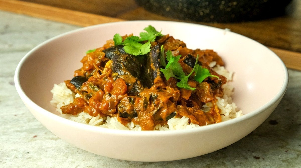 Niall Kirkland heeft het weer geflikt met dit veganistische aubergine masala-recept. Vol met rokerige, verkoolde aubergine en een rijke tomatenbasis, is het alles wat je wilt in een masala.