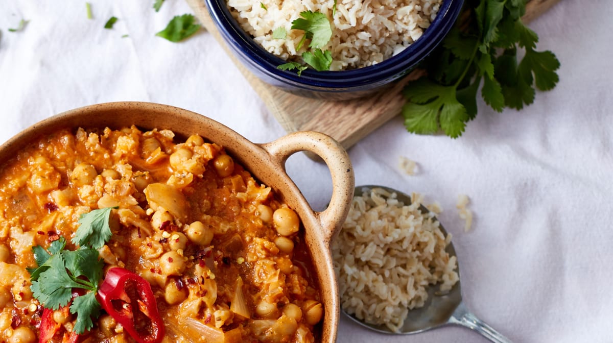 Serveer met volkoren rijst, een dopje melkvrije yoghurt en een beetje limoensap.