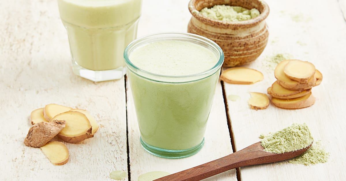 Matcha-thee is een speciaal soort op steen gemalen, traditionele Japanse groene thee die natuurlijke polyfenol-antioxidanten bevat, catechinen genaamd, waarvan bekend is dat ze veel gunstige gezondheidseigenschappen hebben. De cafeïne in matcha-thee komt gestaag vrij in het lichaam dankzij de andere verbindingen, dus er is geen zenuwachtige cafeïnepiek bij deze smoothie.