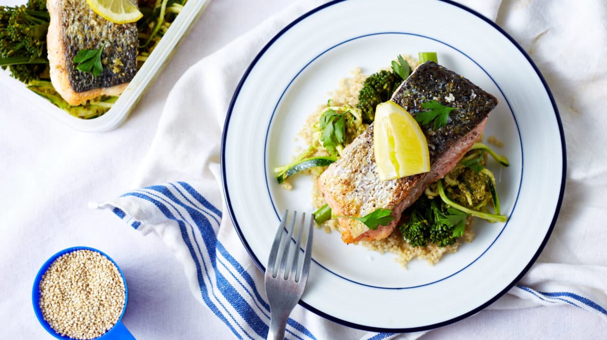 - Kook couscous volgens de aanwijzingen op de verpakking en verdeel dan over 3 Tupperware-bakken. Verdeel de zalm, groenten en wat plakjes citroen over de bakjes en laat afkoelen. Bedek en koel tot 3 dagen. Als je klaar bent om te eten, zet je de magnetron gedurende 3 minuten op vol vermogen (of tot het warm is). Enjoy!