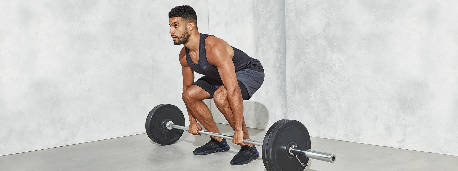 Probeer je houding te verbreden en je greep naar de binnenkant van je dijen te brengen, dit kan je helpen om je heupen in een sterkere startpositie te zetten, door meer van je 'posterior chain' spieren te gebruiken, zoals je hamstrings en bilspieren.