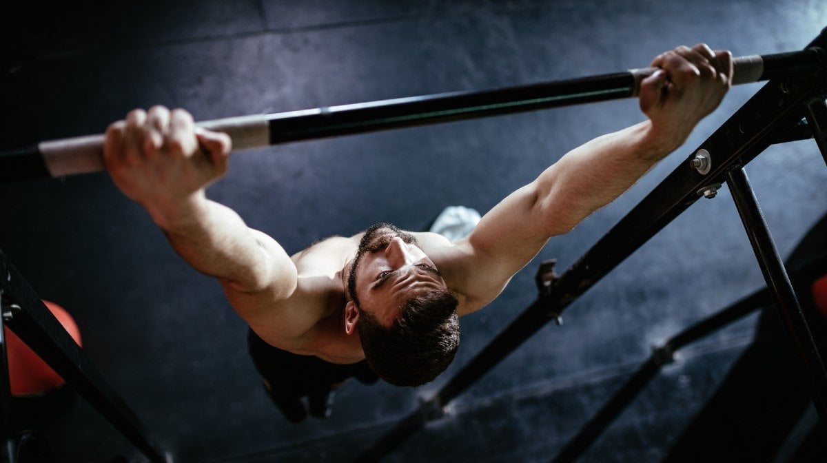 - Gebruik een optrekstang en pak de stang met een bovenhandse greep vast met je handen op schouderbreedte uit elkaar of iets wijder.