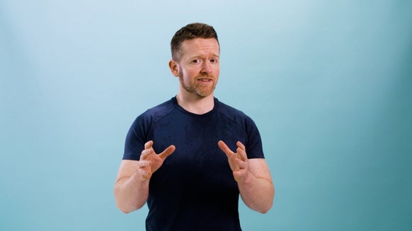 4. Terwijl je een rechte rug aanhoudt en je borst vooruit houdt, ga je door je heupen en knieën buigen alsof je op een stoel gaat zitten