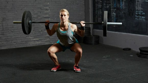 Hielen stevig op de grond We beginnen onderaan het lichaam bij de hielen. Je volledige squatbeweging begint namelijk vanuit de hielen, waarbij je als het ware de grond van je weg wil duwen. Daarom is het ook belangrijk om deze gedurende de volledige beweging stevig op hun plaats én op de grond te houden. Laat je hiel dus niet naar boven komen of ga niet op je tenen staan.