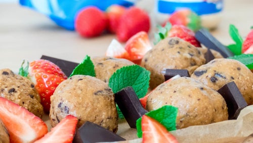 Cookie dough bonbons met aardbeien en munt